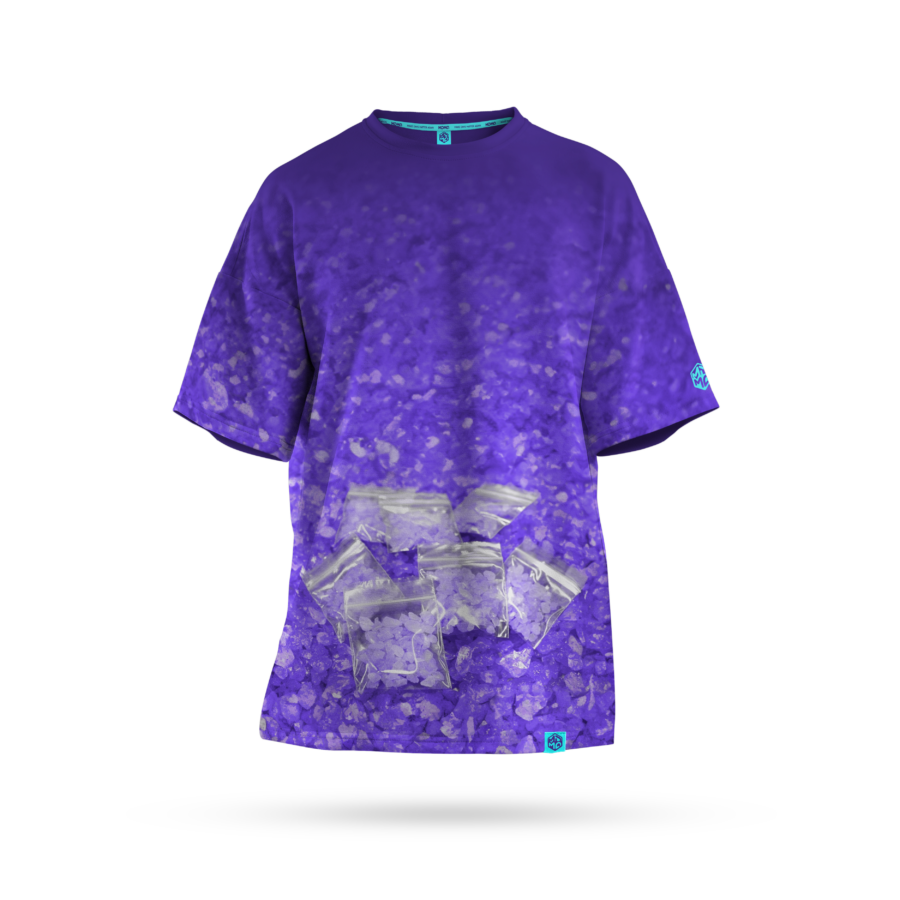 Mit bestickten Logo am linken Ärmel und am Nacken, die im dunkeln leuchten.