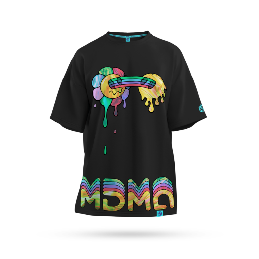 Mit bestickten Logo am linken Ärmel und am Nacken, die im dunkeln leuchten.