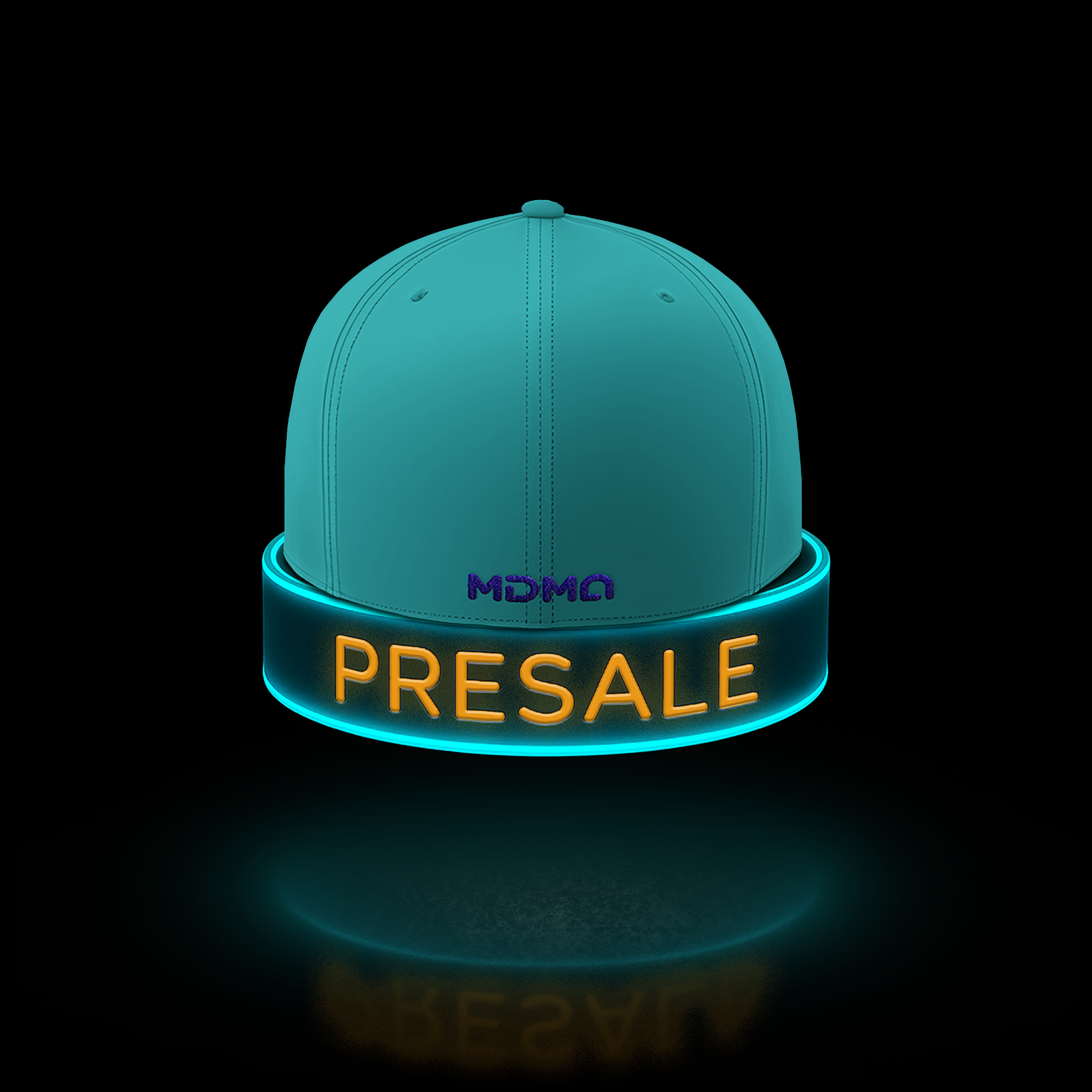 Das dreifach platzierte MDMA-Monogramm – vorne, seitlich und am Hinterkopf – ist mit Glow-in-the-Dark-Garn gestickt. Dezent bei Tag, leuchtend im Dunkeln. Ein klares Statement.