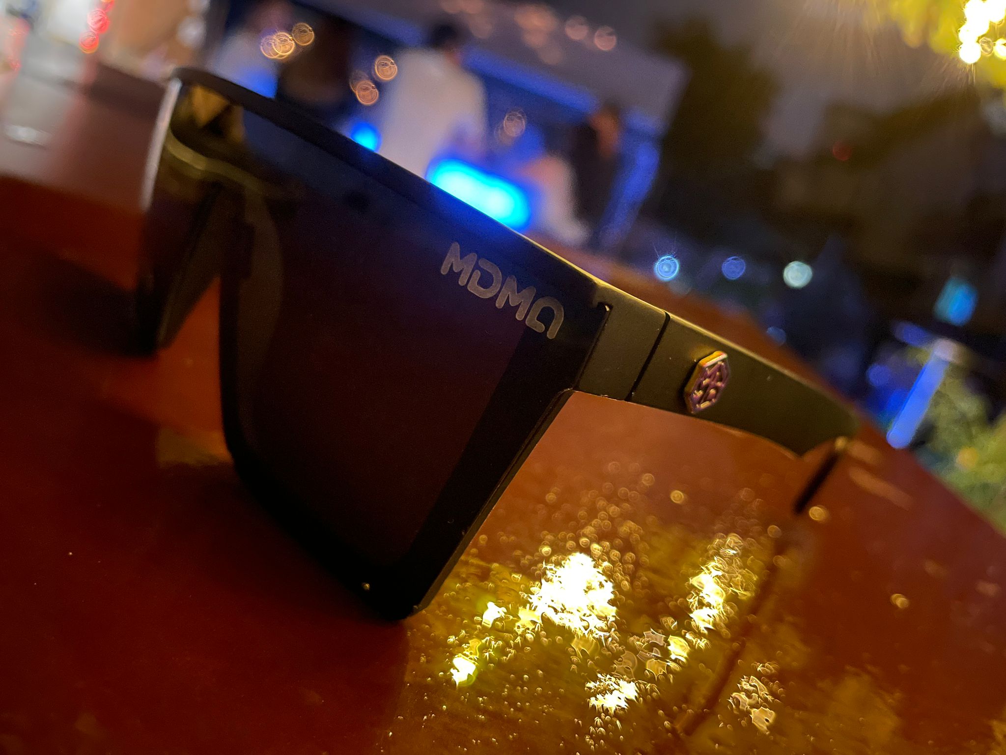 mit Monogramm auf den Seiten und mit den MDMA Logo vorne eingraviert auf dem Glas.