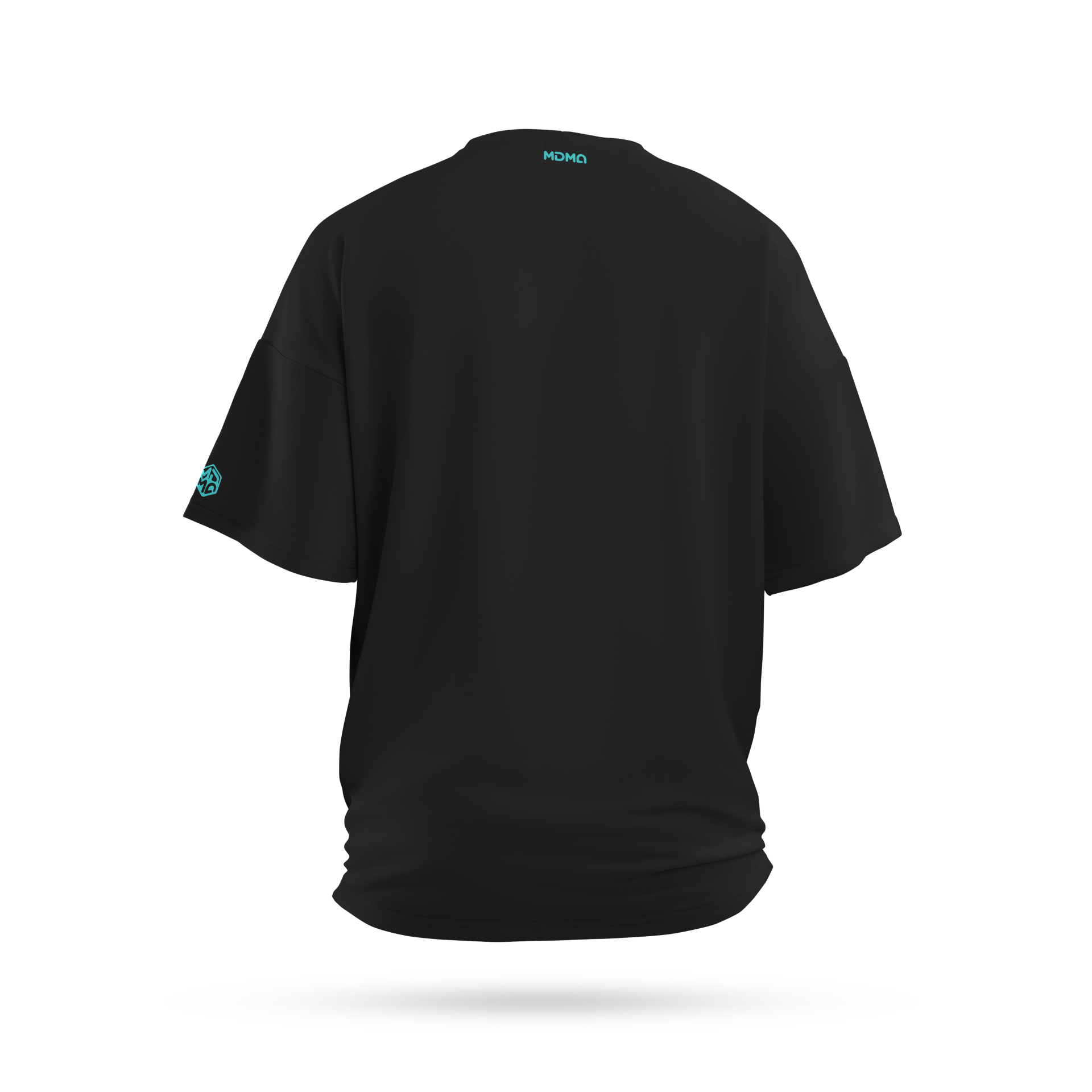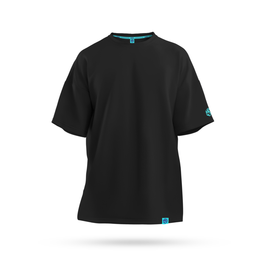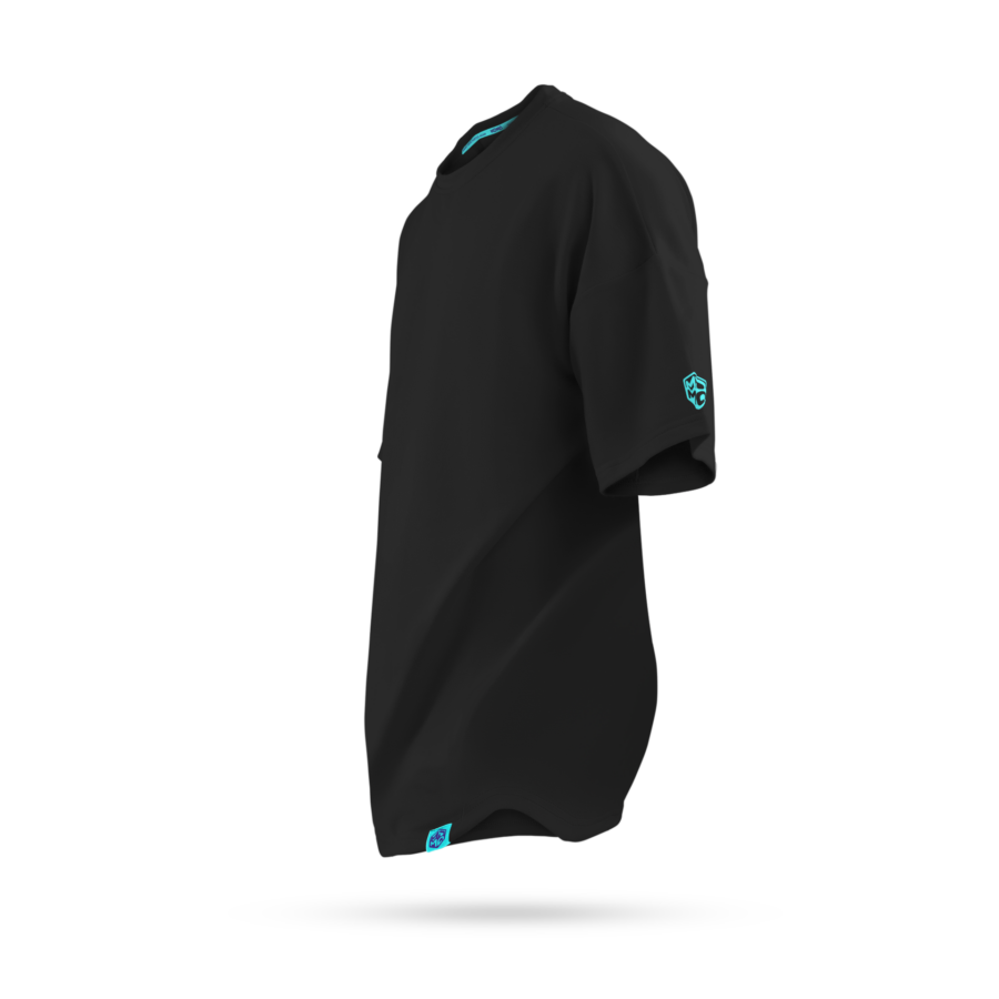 Mit bestickten Logo am Ärmel und am Nacken, die im dunkeln leuchten.